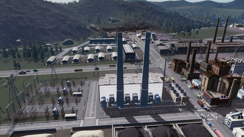 At moment the city is powered by Coal and Oil however, as you can see I am in the middle of preparing an EPR1400 (1.4GW) nuclear power plant that will replace the two fossil fuel clunkers.