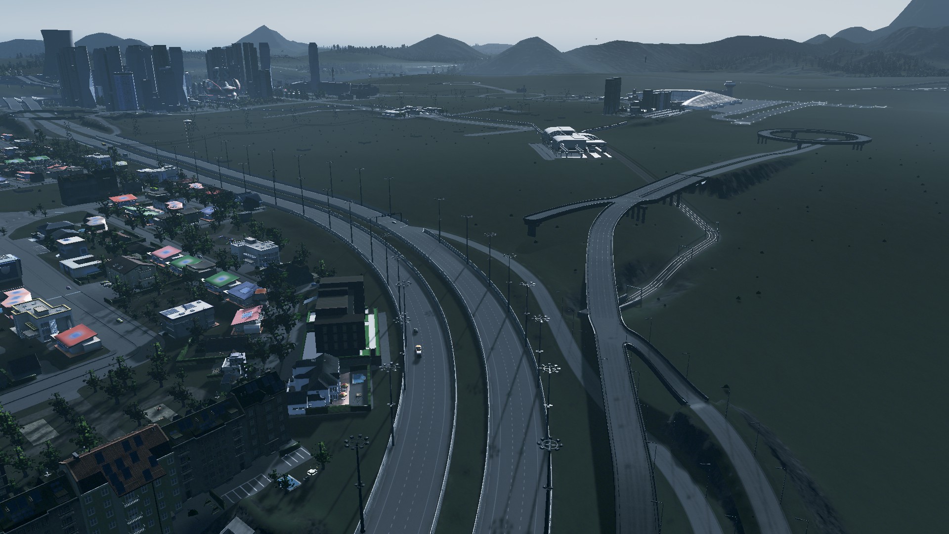You can see I am preparing a new 6-lane motorway as well. This will form the new bypass that will connect to a large T-Junction to the right of Nuclear City (first picture) allowing me to either Shrink the existing 6-lane motorway that divides Manukau Estates and Manukau Technology Park or replace it with a tree lined boulevard. Just out of interest I ran the stats last night and for a population of ~130,000 I also had 3,287 parked cars in the City.
