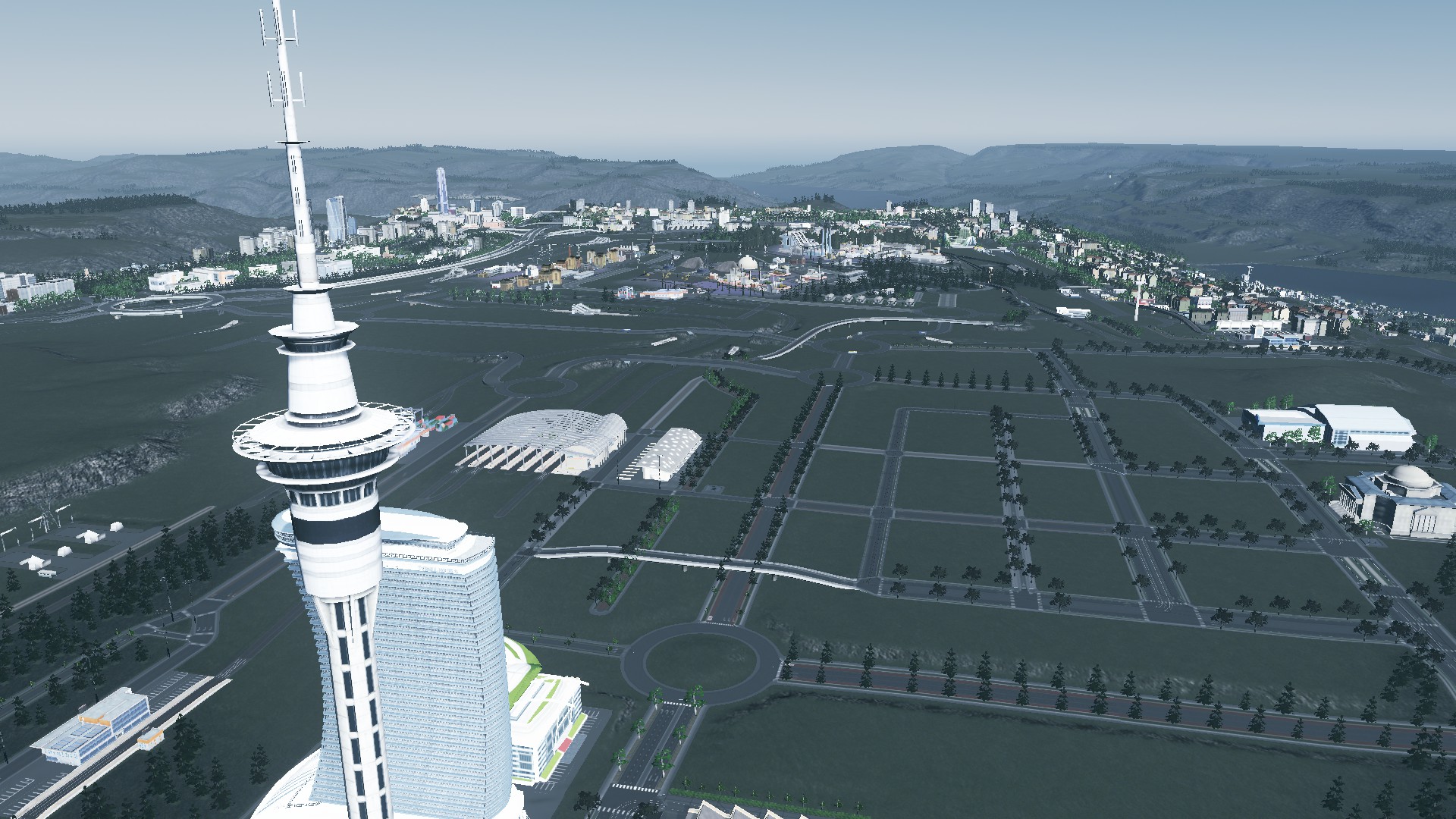 It takes about a week to draw up everything needed to bring an urban development online (and the urban development has not occurred yet). This is shown in the picture looking down onto the Sky Tower and the road network just beyond it.