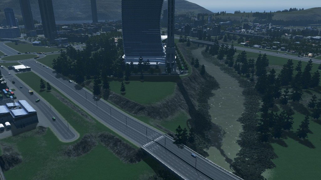 I have played Cities Skylines for long as it has been out – 5 years. Yet while perfecting transit and freight transportation options my active modes planning was no more than painted cycle lanes, the odd separated cycle lane next to trams or disjointed cycle-ways over a motorway.