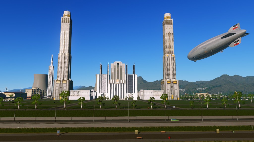 This time I decided to run the City known as Grand City of Solaria to a theme and what a mess of a theme it is (deliberate). The city will follow a Soviet post 1945 theme but I am mixing a bit of Albert Speer design, British/Soviet Nuclear Steampunk into the mix as well. By nuclear steampunk it builds on an original idea in the 50 and 60’s that everything would be nuclear powered (including ships, planes, ovens (microwaves are actually nukers) and power too cheap to metre (not sure if it was nuclear cars or battery cars recharged by the grid powered by reactors)) with design blending brutal-ism and late Victorian/Modernism. I believe the Fallout game series might represent this best before the missiles flew.