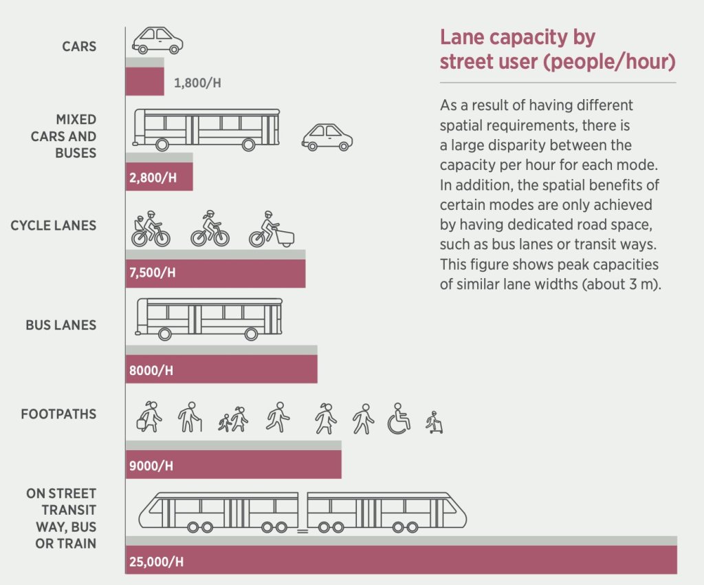 The graphic below from Auckland Transport shows how many people a lane can move depending on mode type in real life cities. The same principle applies in Cities Skylines 2, and why we optimise then upgrade the systems!