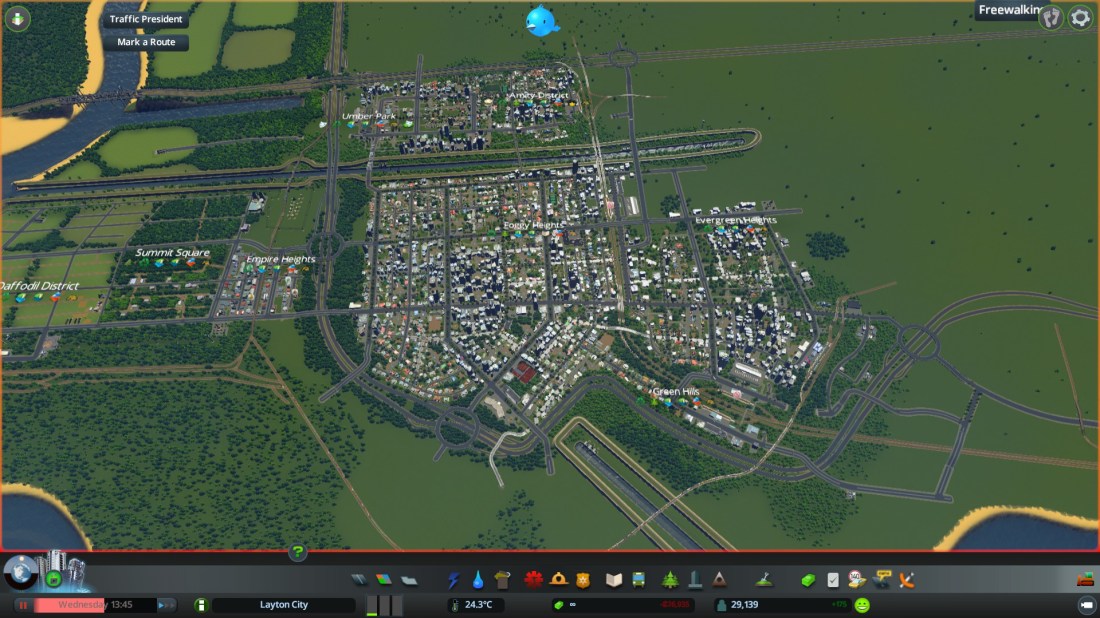 Placing the final road link Wet weather means Cities Skylines time and some serious time at that. Yesterday I worked on two major projects for Layton City as it continues to grow. First was to connect a main intra-Layton City Highways intersection up to the main inter-city highway at the western edge of the … Continue reading The Way-less Travel in #CitiesSkylines